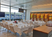 Die Lounge im YB-Look besticht durch ihre grosszügige Raumgestaltung mit Hochtischen und Loungemöbeln. In der Wankdorf Lounge geniessen Sie und Ihre Gäste eine grandiose Aussicht ins Stadioninnere und haben die Möglichkeit auf dem Balkon während den Pausen den Kopf zu «lüften». Der Raum eignet sich hervorragend für Workshops, Meetings oder als Gruppenraum. Die Lounge ist ausgestattet mit einer Bar mit Kaffeemaschine sowie zwei Flatscreens mit Click-Share Anschluss.